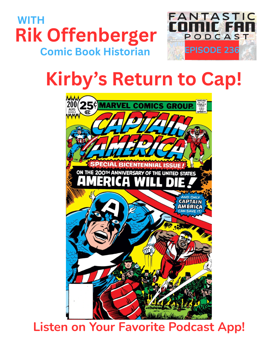 Comic book historian Rik Offenberger joins me to dig into Jack Kirby’s 1970s run on Captain America, exploring the stories, themes, and creative energy that defined this bold era of the character.