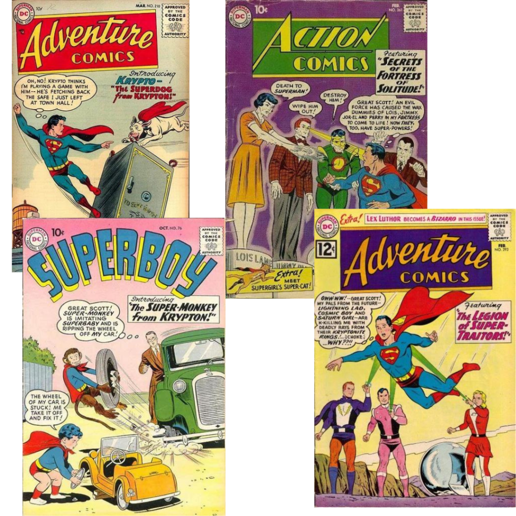 Krypto, the Super Dog, first appeared in 1955. Streaky, The Super Cat, appeared in the Super-Girl backup of Action Comics in 1960. Beppo made his debut in 1959. Comet came from a unique place, with his first appearance in a Legion of Super-Heroes tale (1962) that also marked the first appearance of the Legion of Super-Pets!
